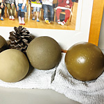 憧れの保育学研究者である加用文男さんの影響を受け、私も数年ほど前から泥団子作りを始めました。幼児期の子どもたちは夢中になって泥団子を作ります。きっと大人も、一度作り始めると、途端に遊び心を取り戻し夢中になると思います。材料は普通の砂と水のみで、写真右の泥団子はこれまでの最高傑作です。