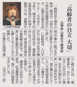 【新聞】社会福祉学部・仁科伸子 教授が高齢期と地域に関する講演を行いました