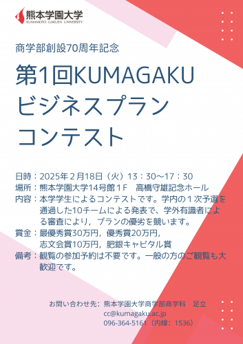 - 商学部創設70周年記念 第1回KUMAGAKUビジネスプランコンテスト
