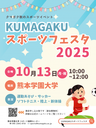 熊本学園大学では、地域交流スポーツイベント「KUMAGAKUスポーツフェスタ2025」を、10月13日(月・スポーツの日)に開催します。
