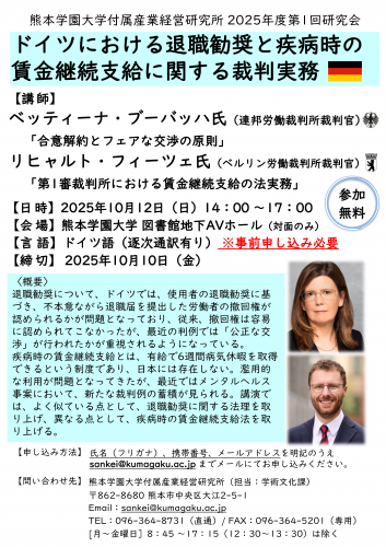 - テーマ:『ドイツにおける退職勧奨と疾病時の賃金継続支給に関する裁判実務』