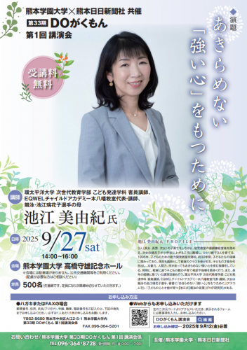 第33期「DOがくもん」第1回講演会を開催します。 日 時:2025年9月27日(土)14:00~16:00 会 場:14号館 高橋守雄記念ホール テーマ:あきらめない「強い心を」もつために 講 師:池江 美由紀 氏 申込み:申し込み受付は終了いたしました。 申込フォーム 詳細はこちら